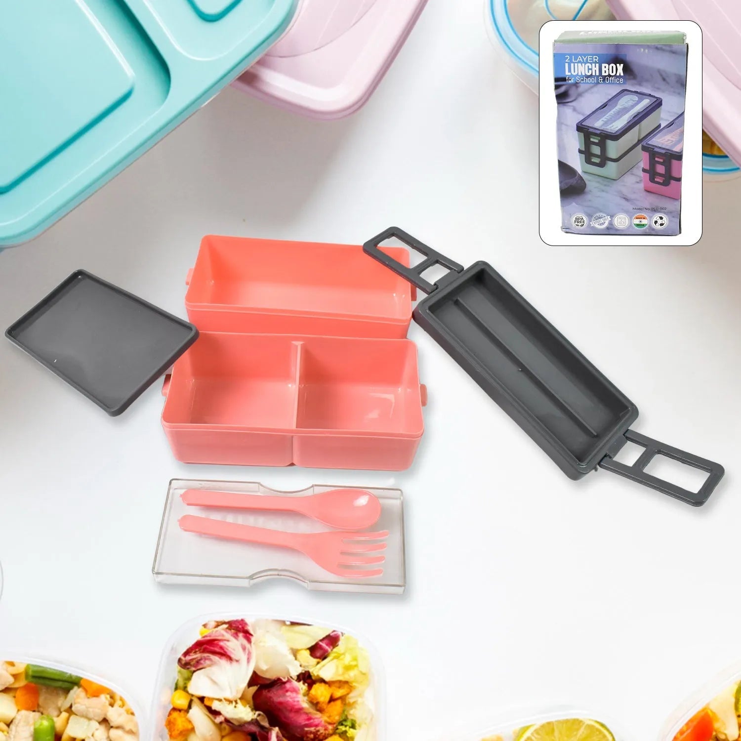 Plastic 3 Layer Leak Proof 3 Compartment Lunch Box For Office (1 Pc)